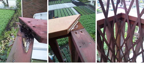 2階バルコニー柱と笠木を交換しました。ウッドワンの笠木と防腐剤注入の大引きを柱で使い補修。